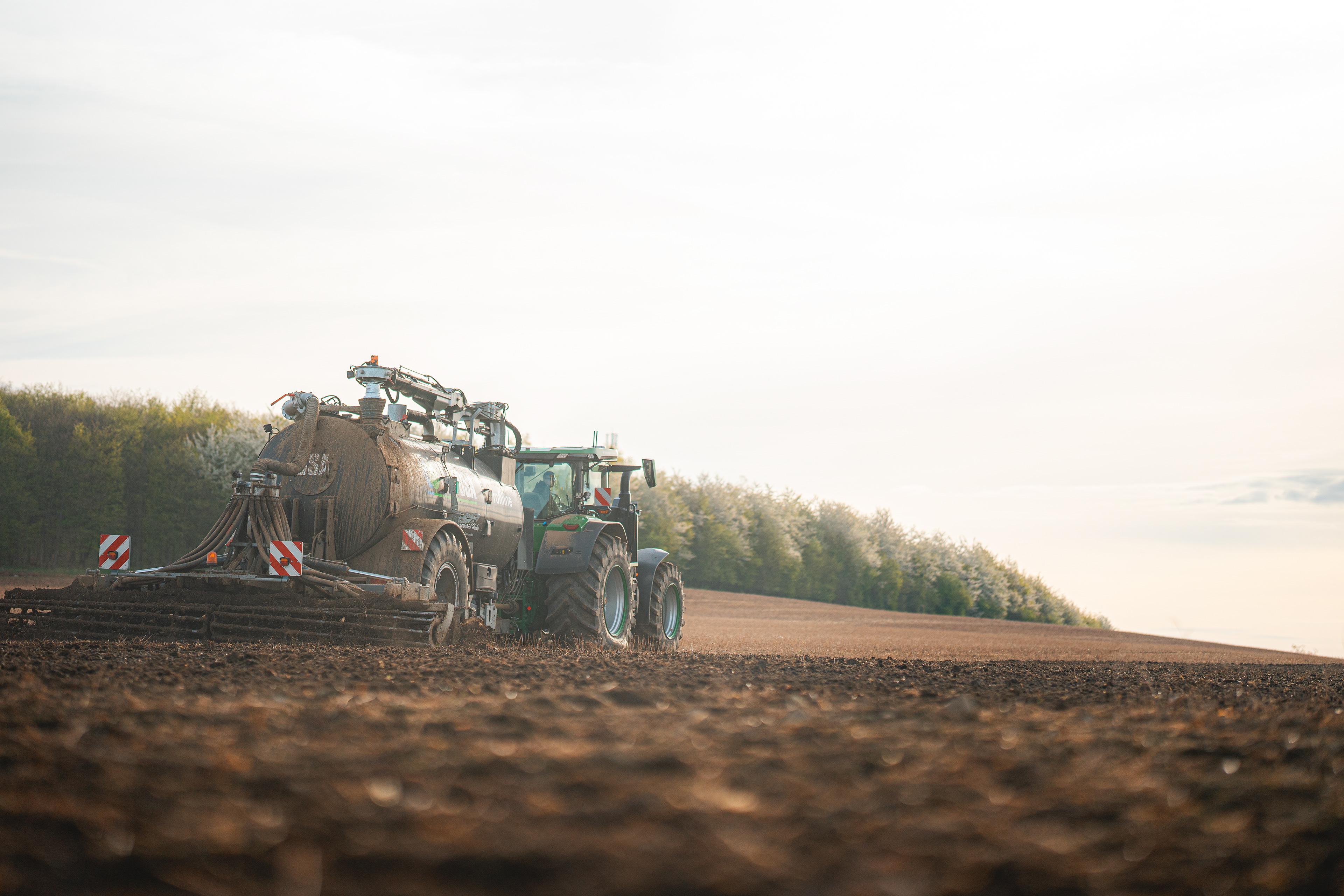 Auch die Ausbringung organischer Dünger ist ein wichtiger Bestandteil unserer nachhaltigen Landwirtschaft. In enger Zusammenarbeit mit unseren Partnern setzen wir auf eine regionale Kreislaufwirtschaft, bei der Nährstoffe aus organischen Quellen in den Boden zurückgeführt werden. Das fördert nicht nur die Bodengesundheit, sondern reduziert auch den Bedarf an synthetischen Düngemitteln und schont die natürlichen Ressourcen.